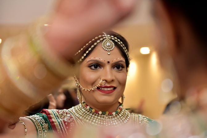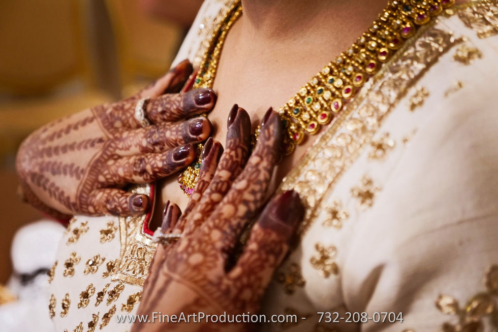 This is where expert photographers and videographers from Fine Art Production appear on-site to capture the smallest details, capturing lots of candid-bride-getting-ready-photo-moments, using creative lighting, reflection-in-mirror-photography, looking through the dupatta pictures, fixing your nose-ring posed candid picture, fixing your wedding jewelry detail portraits, mother-helping-bride-getting-ready-moments, laughing and having fun-with-brides-maids-portraits, a candid cute moment with your little niece and / or nephew who is going to be a ring-bearer for your wedding, very loving moment-with-bride’s-father-portrait and may be a groom-peaking-into-bride’s-room pictures – We will be there quietly capturing bride-getting-ready-photos on our camera.
